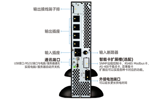 可安裝至普通的網絡機柜、服務器機柜等里面工作,節省空間。該機型占用空間高度為2U,內置蓄電池,停電后延時10分鐘左右。