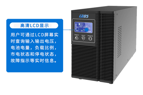用戶可通過LCD屏幕實時查詢輸入輸出電壓,電池電量,負載比例,市電狀態和停電狀態,故障指示等實時信息。